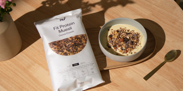 Das glutenfreie nu3 Fit Protein Müsli ist ein Frühstück mit optimalen Nährwerten. Es enthält deutlich weniger Kohlenhydrate und unter fünf Prozent Zucker, der von Natur aus in den Zutaten steckt. Außerdem hat es im Vergleich zu herkömmlichem Knuspermüsli viel Protein und Ballaststoffe.